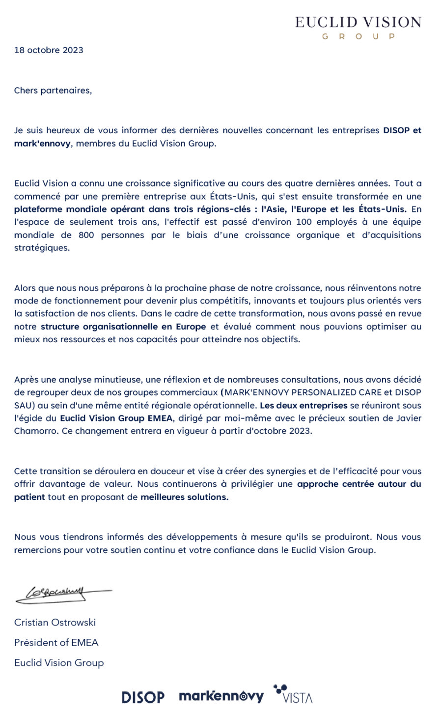 Le regroupement de mark’ennovy et DISOP semble logique, les deux entreprises produisant des produits complémentaires : lentilles et produits d’entretien.
