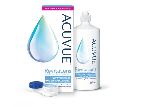 ACUVUE® RevitaLens existe en format de voyage 100ml, en flacon 360ml, et en pack 6 mois.