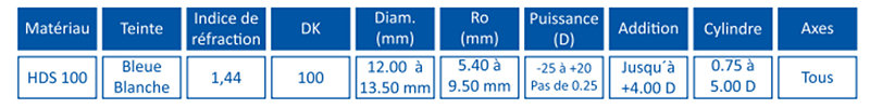 L´adaptation se réalise avec une boîte d’essai en fonction de la topographie cornéenne ou en se basant sur la kératométrie. Les boîtes d'essai incluent des lentilles à géométrie oblate et prolate, des lentilles adaptées aux cornées régulières, kératocônes, kératoplasties, et cornées post-lasik.